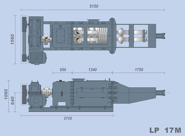15 -18 Tons FFB/Hour Horizontal Double Screw Worm 305 mm Diameter x 1067 Long 10 - 12 rpm 5150 mm approx. 1560 mm approx. 1085 mm approx. 30 KW/40 HP TEFC Motor 6500 kgs approx. |